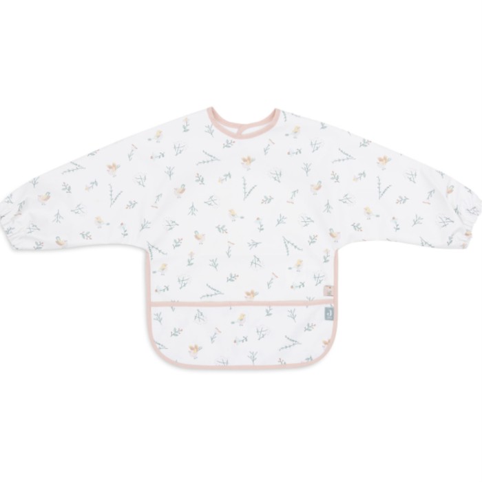 Jollein Haklapp Lovely Birds med långa ärmar kan användas från det att barnet introduceras för mat, och så länge ni har behov av haklapp. Den långarmade haklappen har en mjuk och behaglig vattenavvisande kvalitet. Du kan antingen torka av den med en trasa, eller sköljer den lätt efter användning. Kan även tvättas i maskin.