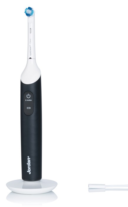 Jordans elektriska tandborste levereras med Jordan-borsthuvud som har Jordan borstteknik, men är också kompatibel med de flesta av Oral B:s tandborstar.