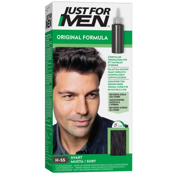 Just For Men Hårfärg är ett hårfärgningsmedel för män som återställer originalfärg för ett naturligt utseende. Hårfärgen innehåller bl a keratin, olivolja och E-vitamin. Verkar på 5 minuter.