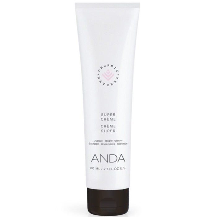 ANDA Super Crème gör huden mjuk, jämn och ger en förnyad hudyta. Krämen innehåller kaviarlime (Fingerlime), en frukt rik på antioxidanter och syror som stimulerar exfoliering över tid för att ge en slätare hud. Ingrediensen alfalfa verkar föryngrande och har en retinol-liknande effekt. Mikroalger med ett högt näringsinnehåll boostar hudens funktioner och förebygger uppkomsten av rynkor och torrhet.