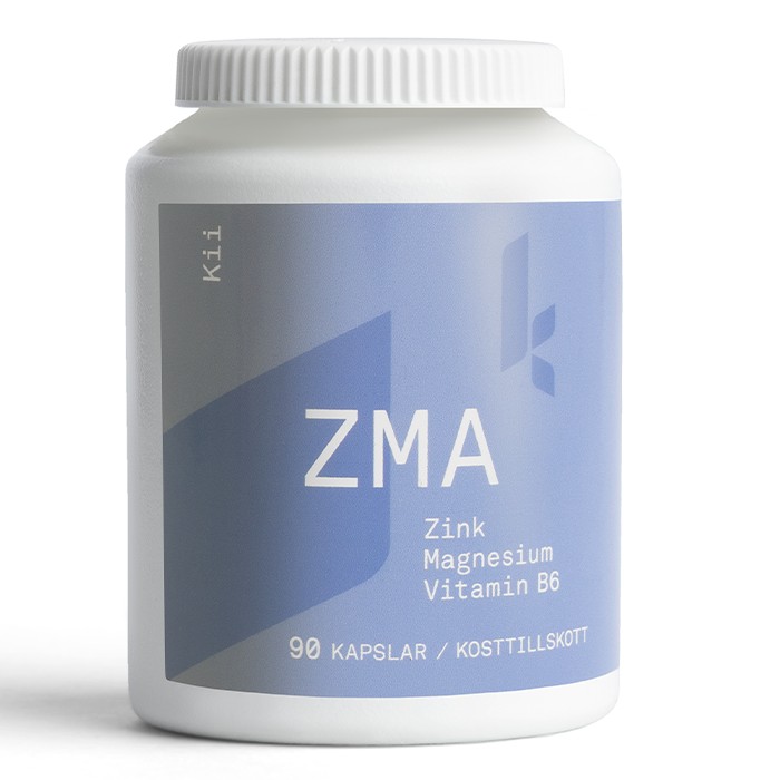 Kii ZMA är ett kosttillskott med zink, magnesium och vitamin B6 anpassat för idrottare och aktiva personer. Zink bidrar till immunsystemets normala funktion och till att skydda cellerna mot oxidativ stress. Magnesium och vitamin B6 bidrar till normal muskelfunktion och energiomsättning, normal psykologisk funktion och till minskad trötthet och utmattning.