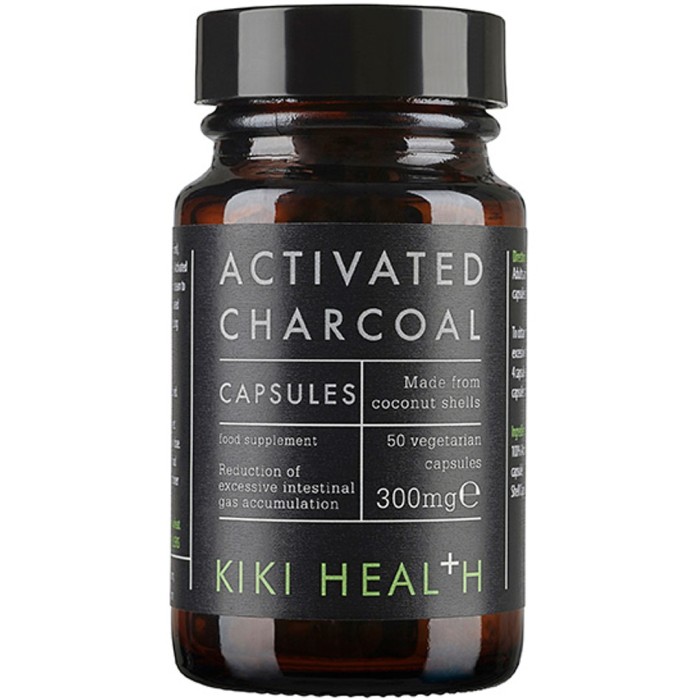 KIKI Health Activated Charcoal Capsules är ett kosttillskott med aktivt kol gjort av kokosnötter, som har blivit renade med ånga för att avlägsna eventuella föroreningar. Kapslarna innehåller ett finmalet pulver (5-10 mikron) vilket ger en stor yta för absorption. Aktivt kol bidrar till att minska överdriven gasbildning efter måltid.
