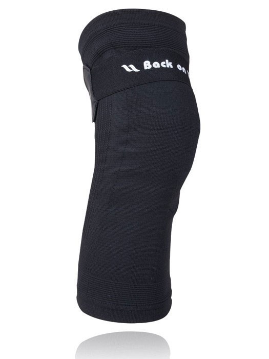 Back on Track Knäskydd med justerbart spänne i överkanten som hålls på plats av två kardborrefästen. Bandet kan spännas när du motionerar, släppas på under vila eller tas bort när du ska sova. Om du har en svullnad kring knät kan spännet vara en fördel eftersom du successivt kan spänna åt lite i taget. I knäskyddets sidor finns två flexibla stavar som erbjuder ett visst stöd samt minskar risken för att skyddet skrynklas ihop i knävecket.