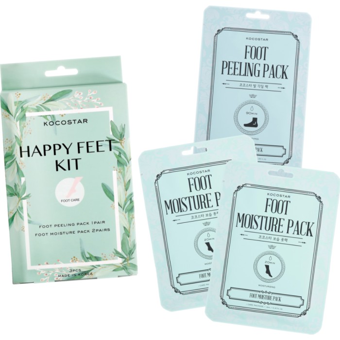 Kocostar Happy Feet Kit innehåller produkter för att hålla huden på fötterna mjuk och len. Kitet innehåller två bästsäljande KOCOSTAR-produkter: Foot Moisture Pack och Foot Peeling Pack som vårdar dina fötter. Perfekta att använda för en lugn hemma-spa-stund.