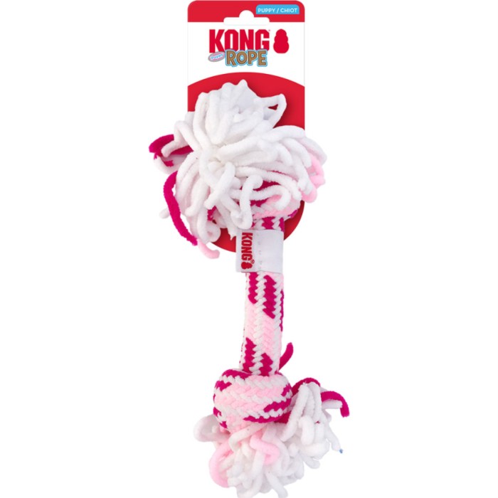 KONG Rope Puppy Stick erbjuder en tillfredsställande tuggupplevelse med ett valpspecifikt, ultrasoft garnmaterial som är stickat till en repform. Har en robust konstruktion och är gjord för långvarig lek, samtidigt som den stödjer instinktiva tuggbehov. Perfekt för dragkamp.