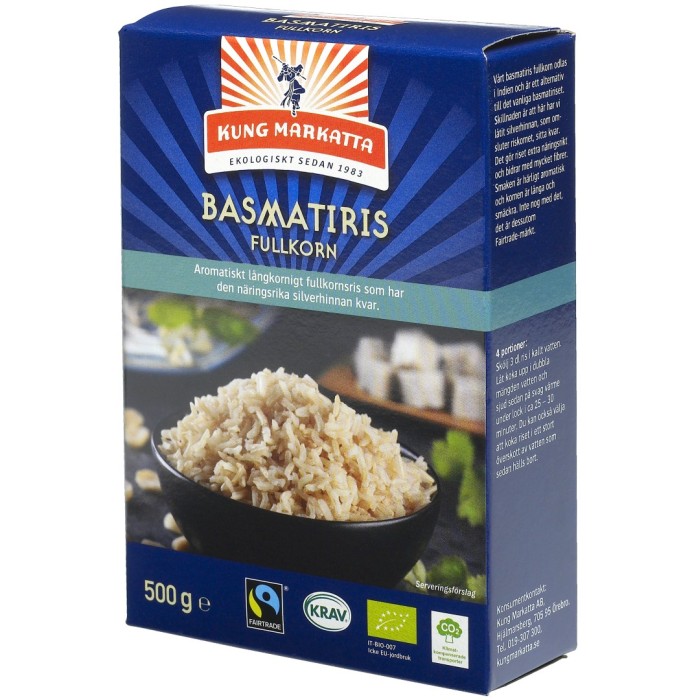 Kung Markattas ekologiska basmatiris är ett fullkornsris som odlats ekologiskt i Indien. Kan användas som ett alternativ till det vita basmatiriset. Skillnaden är att i det här riset har man låtit silverhinnan, som omsluter riskornet, sitta kvar. Det gör riset mer näringsrikt och bidrar med fibrer.