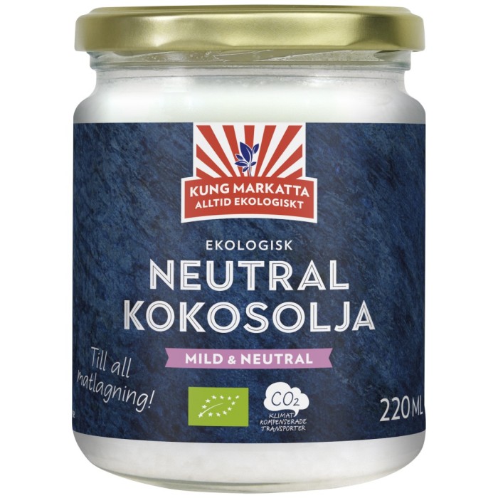 Kung Markattas Kokosolja Neutral är en kokosolja som har en helt neutral smak, så att du kan använda den i all sorts matlagning.
