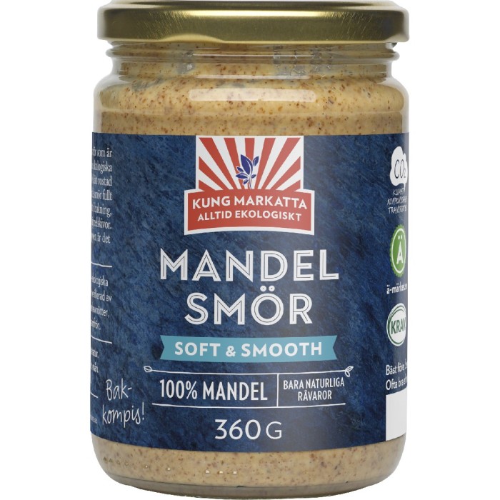 Kung Markatta Mandelsmör har en rund och god smak av ekologiska sötmandlar. De rostade mandlarna har fått behålla den näringsrika hinnan vilket ger en rustikare upplevelse med mer fibrer. Kung Markattas mandelsmör innehåller inga som helst tillsatser - består endast av varsamt rostade och finmalda mandlar - inget annat.