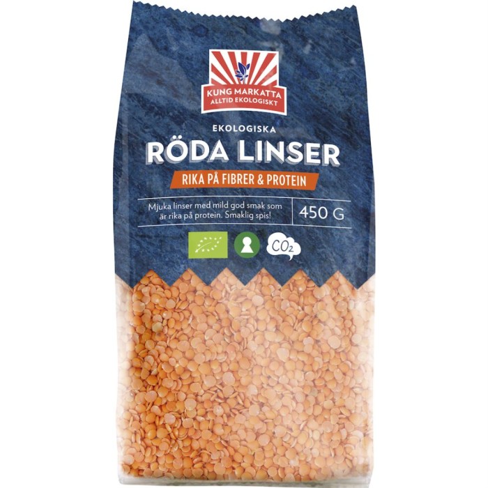 Kung Markattas ekologiska röda linser blir mjuka och lite mosiga vid kokning. Linserna passar därför bra när du ska göra grytor, soppor, röror eller vegetariska biffar. Behöver inte blötläggas innan kokning.