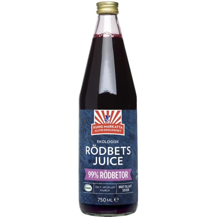 Kung Markatta Rödbetsjuice pressas på ekologiskt odlade rödbetor direkt efter skörd. Juicen har sedan mjölksyre-jästs för att få en balans mellan sötma & syra.