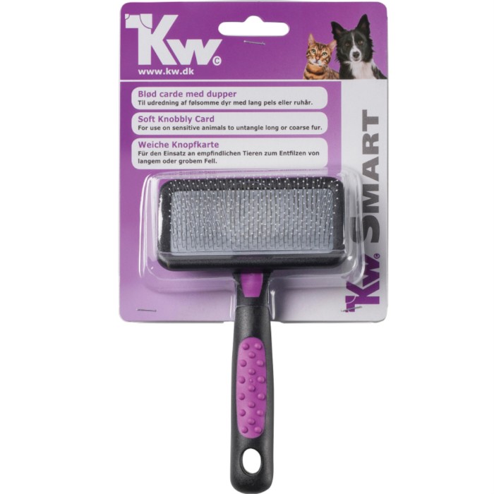 KW Smart mjuk karda med plasttoppar, vilket gör skötseln skonsam mot djuret. Går att använda till hund, katt, kanin och gnagare.