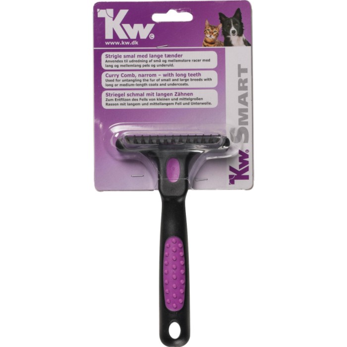 KW Smart Curry Comb är en smidig karda med långa pinnar. Är avsedd för utborstning av päls hos små och stora raser med lång/mellanlång päls samt underull.