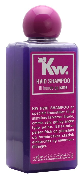 KW Vitt Schampo är ett shampo speciellt framtaget för hundar och katter med ljus päls. Schampot passar för djur med vit eller ljust grå päls.
