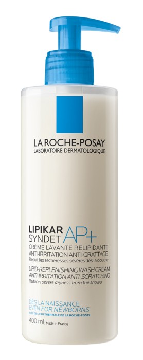 Lipikar Syndet AP+ duschgel är mycket mild och innehåller karitésmör, niacinamide och Aqua Posae Filiformis, som verkar lugnande för huden. Svider inte i ögonen.