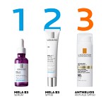 La Roche-Posay Mela B3 Serum är ett ansiktsserum med 10 % niacinamid, hyaluronsyra och MELASYLTM som återfuktar och får pigmentfläckar/mörka fläckar på huden att upplevas mindre synliga. Serumet gör att huden upplevs yngre med en jämnare hudton och synligt reducerade pigmentfläckar. (Synliga resultat upplevs redan efter en vecka*.) Serumet hjälper till att stärka hudbarriären och motverkar återkommande mörka fläckar. Testad på alla hudtoner.