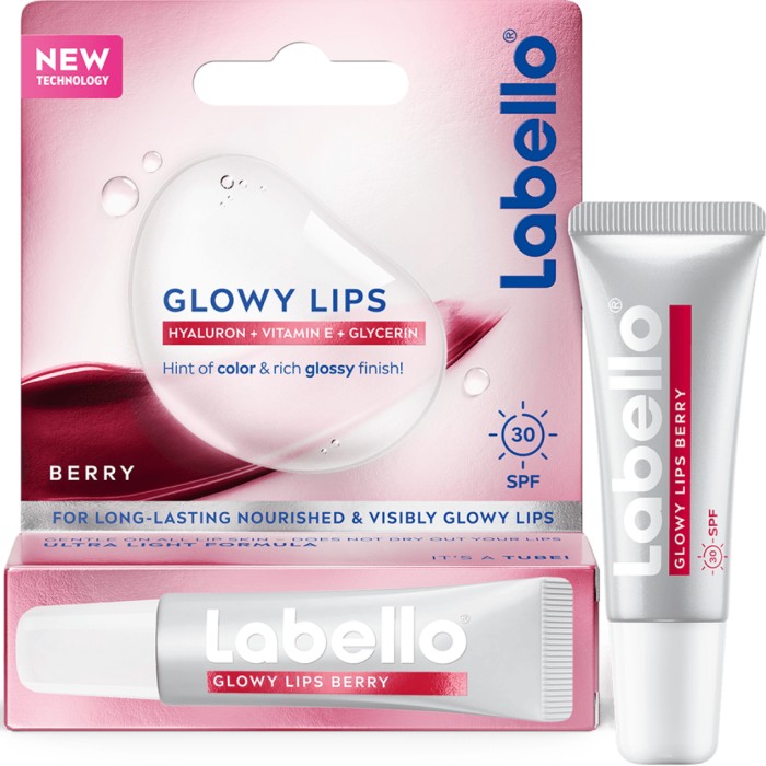 Labello® är skonsam mot huden på läpparnas och torkar inte ut, vilket gör att det passar bra för daglig användning. Hudkompatibiliteten är dermatologiskt testad, och Labello GLOWY LIPS innehåller även SPF 30 för att skydda läpparna mot solens strålar.
