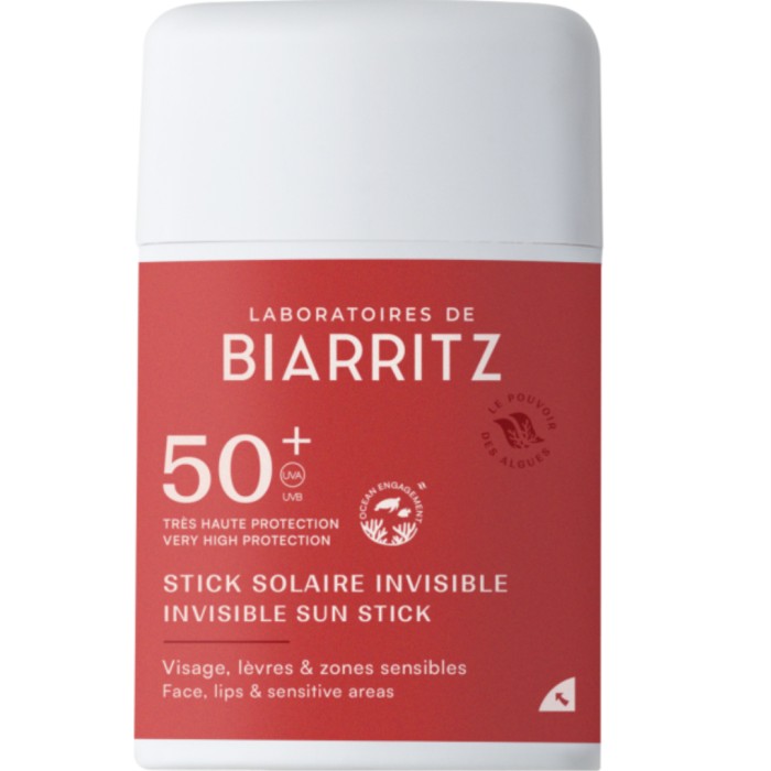 Laboratoires de Biarritz Suncare SPF50+ Invisible Stick är ett solstift att använda på ansiktets känsliga och utsatta områden, som läppar, näsa, kinder och öron. Solstiftet ger ett mycket högt skydd mot solens UVA- och UVB-strålar. Solstiftet syns inte på huden, är vattenavvisande och innehåller karnaubavax som gör att det är enkelt att applicera.