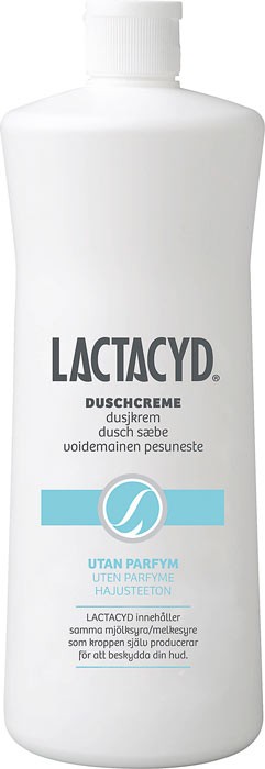 Lactacyd duschcreme utan parfym är en flytande tvål för kroppen. Lactacyd har ett lågt pH-värde och innehåller fuktbindande mjölksyreämnen. Lactacyd duschcreme har en något tjockare konsistens än Lactacyd flytande tvål. Kan användas på känslig hud.