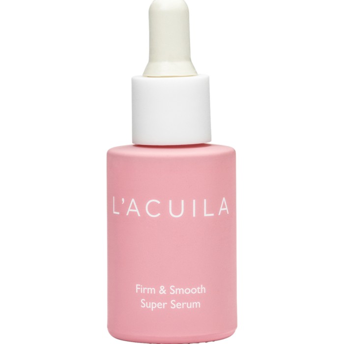 L'Acuila Firm & Smooth Super Serum är ett ansiktsserum med ingredienser som boostar huden för att göra den slätare, jämnare och mer plumpad, och ge lyster. Serumet gör att din hud ser jämnare ut direkt vid första applicering. På längre sikt verkar serumet för att öka hudens kollagenproduktion vilket förbättrar hudens fasthet och spänst. Vegansk. Milt parfymerad.