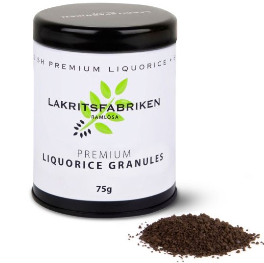 Premium Liquorice Granules från Lakritsfabriken i Ramlösa är lakritsgranulat med ursprung från Italien. Kan användas för smaksättning och dekoration av maträtter, bak, desserter och godis.