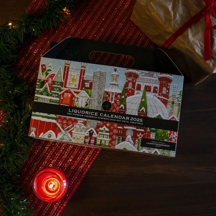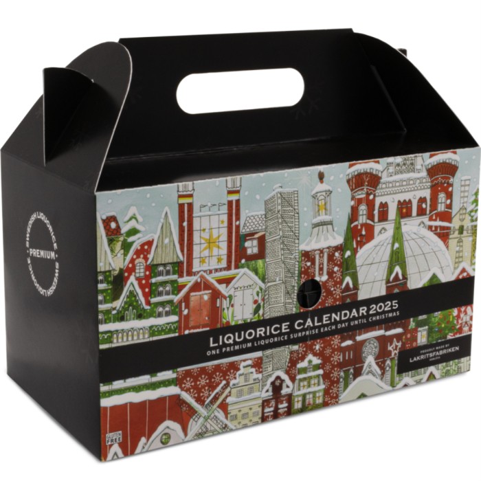 Årets lakritskalender 2025 från Lakritsfabriken är fylld med godsaker som förgyller decemberdagarna fram till julafton. Detta är en generös kalender som innehåller hela 720 gram lakrits, och den går bra att dela på två. Bakom luckorna hittar du godsaker som rålakrits, mjuklakrits, toffee och choklad & lakrits.