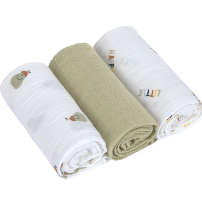 Lässig Swaddle & Burp Blanket Happy Fruits Päron, 3-pack