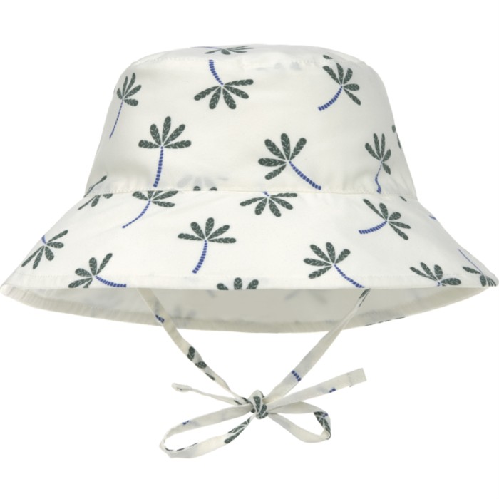 Lässig UV-hatt Palmer är en vändbar "bucket hat" tillverkad av återvunnen polyester, perfekt för sommardagar. Hatten ger ett UV-skydd 80 och skyddar känslig hårbotten hos spädbarn och småbarn. Hatten kan knytas under barnets haka så att den inte blåser bort eller trillar av vid lek. Materialet är lätt, andningsbart och snabbtorkande vilket gör den bekväm att bära både på land och i vatten. Solhatten kan tvättas i 30°C med skonsamt tvättprogram.