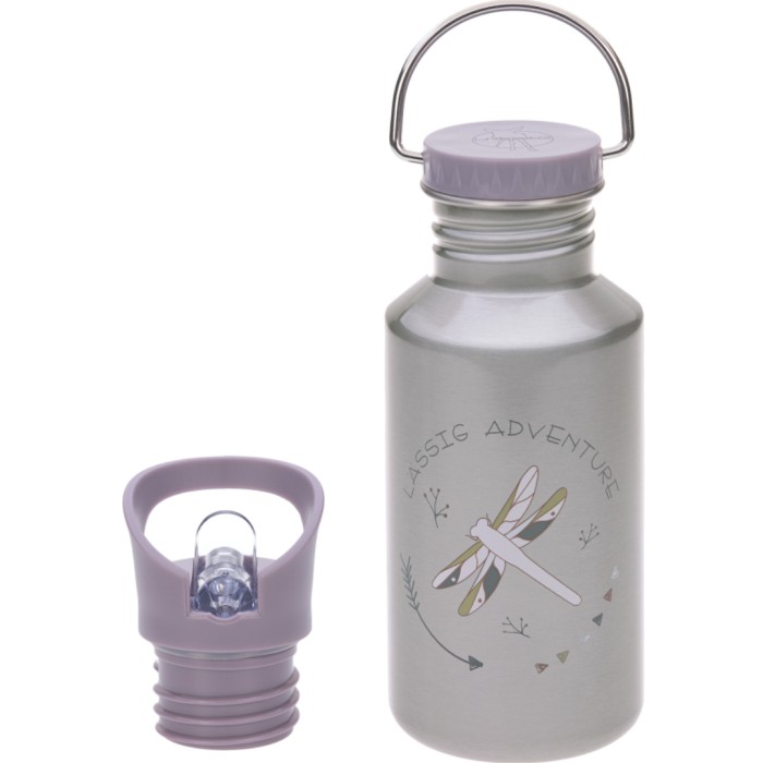 En robust vattenflaska i rostfritt stål från Lässig. Flaskan är okrossbar, läckagefri och passar för stilla och kalla drycker. Den kommer med två olika lock, en praktisk skruvkork med en klämma i rostfritt stål och en sportkork som gör det enkelt för barn att dricka själva. Flaskan rymmer 500 ml och finns i olika designer, här med en trollslända.