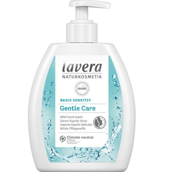 Basis Sensitiv Gentle Care Hand Wash är en mild handtvål från Lavera. Handtvålen har en näringsrik formulering som innehåller bland annat aloe vera och kamomill. Tvålen rengör händerna milt och utan att torka ut huden. En handtvål med fräsch doft, rikligt skum av milda surfaktanter och hudneutralt pH-värde.