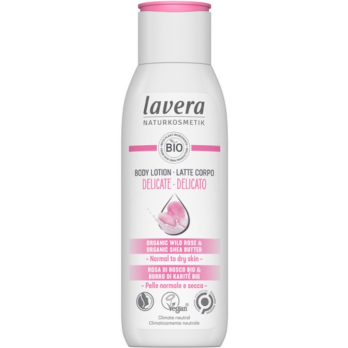 Lavera Delicate Body Lotion är en bodylotion som återfuktar och mjukar upp huden. Kroppslotionen innehåller bland annat vildrosextrakt och sheasmör, som är rikt på E-vitamin och effektivt återfuktar torr hud. Med en näringsrik formulering ger denna bodylotion huden intensiv och långvarig återfuktning, med en härlig doft av ros.