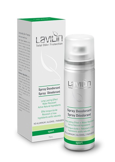 Lavilin Spray Deodorant Sport är en deo med probiotika som motverkar dålig lukt i armhålorna i upp till 72 timmar.