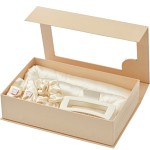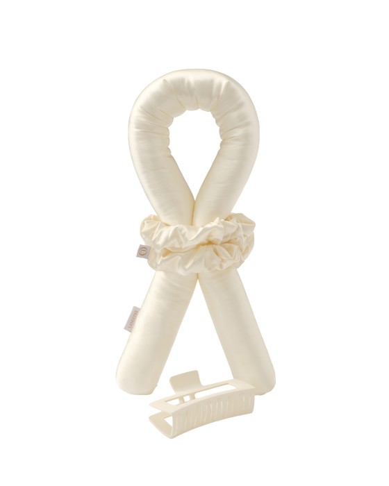 Heatless Curls band tillverkad i 100% mullbärssiden. Stoppning tillverkad i polyuretanskum. Scrunchies tillverkad i 100% satin exklusive resår.