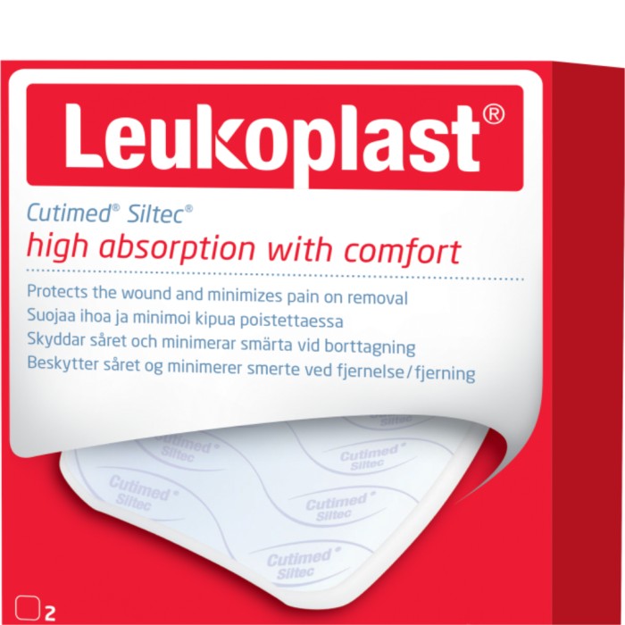 Leukoplast Cutimed Siltec är ett skumförband som anpassar sig efter kroppens konturer. Förbandet är tillverkat i polyuretan och har insmälta superabsorbenter. Cutimed Siltec är klippbar och enkel att använda. Förbandet skyddar nybildad vävnad och säkerställer skonsamma förbandsbyten. Förbandet binder sårvätskan tack vare extra absorption och förmåga att hålla kvar vätskan.
