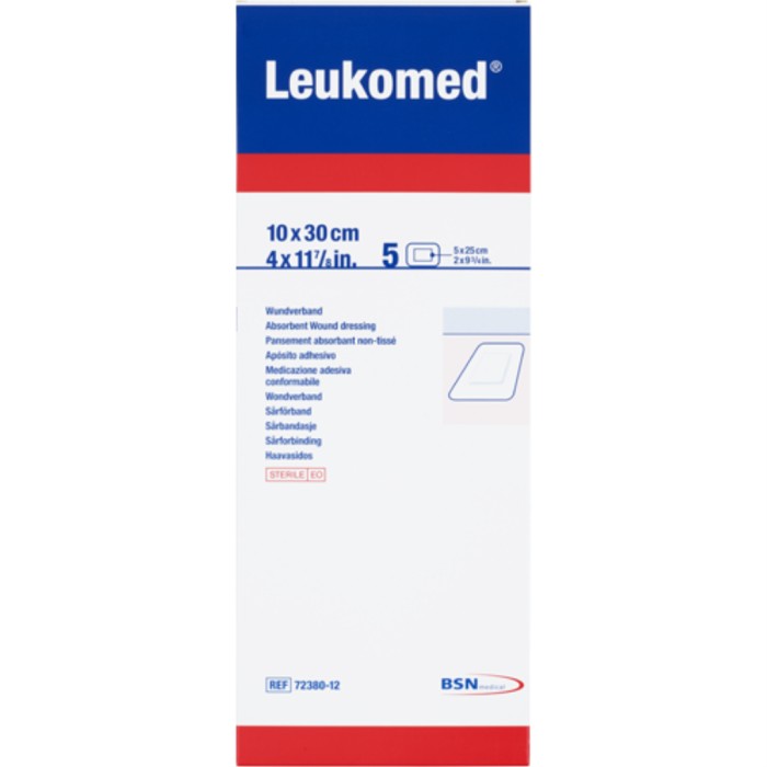 Leukomed är ett sterilt, självhäftande, absorberande förband, perfekt för postoperativ vård samt på små eller medelstora sår. Det är absorberande men släpper igenom luft, vilket minskar risken för huduppluckring. Sårdynan har god absorptionsförmåga och kan hantera svagt till måttligt vätskande sår. Sårdynan har utformats för att inte fastna i såret, vilket förhindrar ytterligare skada.