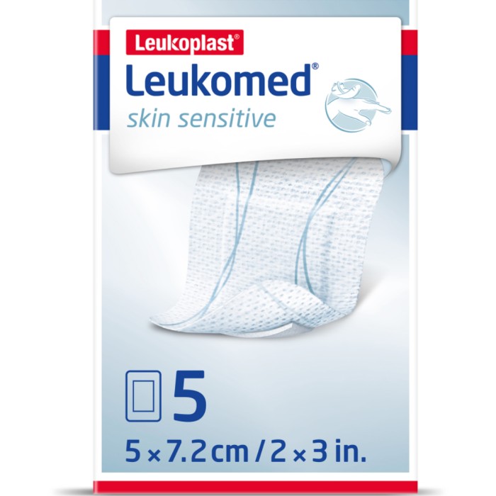 Leukomed Skin Sensitive är ett sterilt och skonsamt förband i vit non-woven med silikonhäfta. Ett absorberande förband som inte fastnar i såret och med rundade hörn för att inte lossna. Lämplig för svagt till måttligt vätskande sår, för skärsår, skrubbsår och andra mindre sår. Passar skör, känslig och skadad hud.