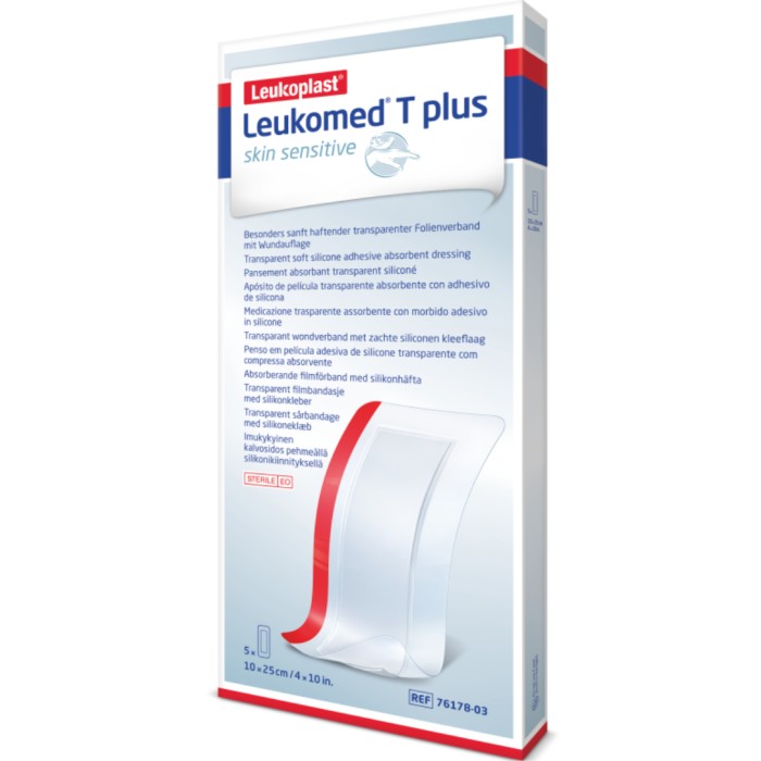Leukomed T Plus Skin Sensitive är ett sterilt, vattentätt sårförband för svagt till måttligt vätskande sår, perfekt för skärsår, skrubbsår och andra mindre sår. Passar skör, känslig och skadad hud.