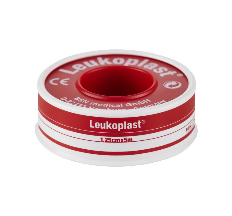Leukoplast, medicinsk tejp i textilväv, är avsedd att användas för fixering på normal hud och vid behov av extra säker fixering. Används även vid fixering av stomibandage. Tejpen kan med fördel även användas i förebyggande syfte mot skoskav. Leukoplast är vatten- och smutsavstötande, samtidigt som materialet av viskos andas. Bra tejp att ha hemma då den har många användningsområden. Att tejpen både är tålig och har stark vidhäftning gör att den lämpar sig för att exempelvis fixera kompresser, fästa lindor och används för att motverka skav Häftmassa: zinkoxidkautschuk Färg: beige Innehåll: 1,25 cm x 5 m 1 st