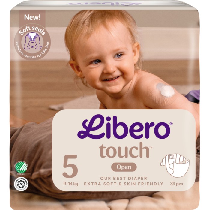 Libero Touch är den mjukaste, tunnaste och mest skonsamma blöjan från Libero. Den öppna blöjan är hudvänlig, andningsbar och dermatologiskt testad. Blöjan är mjuk, stretchig och flexibel och anpassar sig försiktigt efter varje liten rörelse. Våtindikator visar när det är kiss i blöjan. God läckagesäkerhet i upp till 12 timmar med superabsorberande kanalkärna.