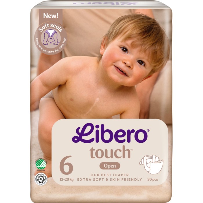Libero Touch är den mjukaste, tunnaste och mest skonsamma blöjan från Libero. Den öppna blöjan är hudvänlig, andningsbar och dermatologiskt testad. Blöjan är mjuk, stretchig och flexibel och anpassar sig försiktigt efter varje liten rörelse. Våtindikator visar när det är kiss i blöjan. Soft seals ger en mjuk, stretchig passform. God läckagesäkerhet i upp till 12 timmar med superabsorberande kanalkärna.