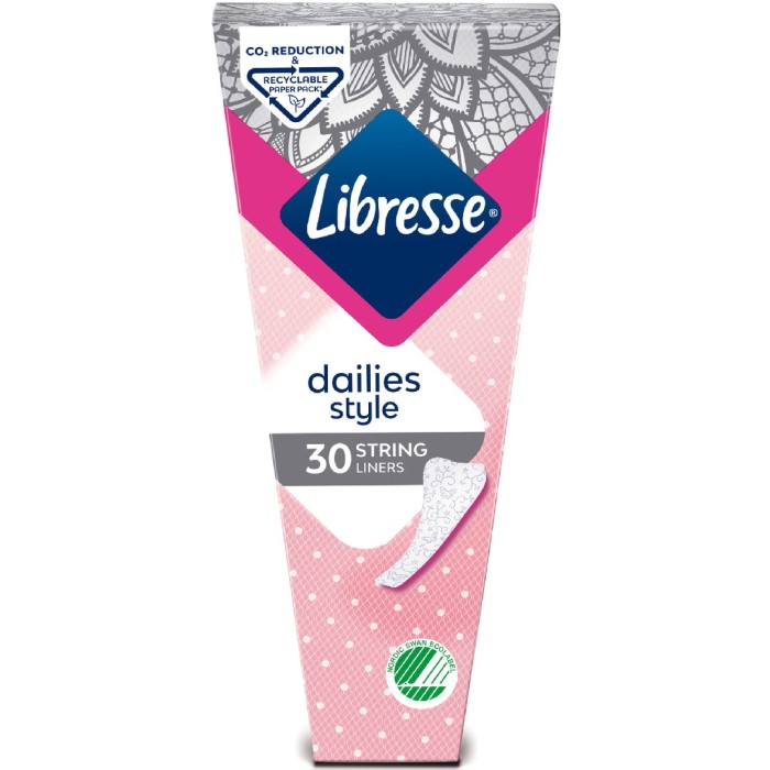Libresse Dailies Style String är trosskydd designade för att passa i stringtrosor. Tunna, mjuka och bekväma trosskydd som kan användas dagligen.