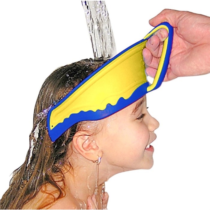 Används med fördel i duschen eller när man sköljer barnets hår i badkaret. Barnet bör kunna sitta eller stå stadigt själv och är huvudets omgång litet är det viktigast att man håller tätt mot pannan för att inte vattnet ska rinna ner i ansiktet.