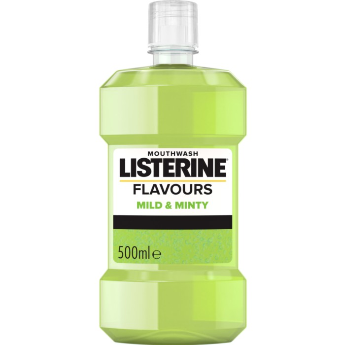 LISTERINE® Flavours Mild & Minty är ett munskölj som rengör, reducerar plackbakterier och ger fräsch andedräkt. Listerine innehåller fluor för att skydda mot hål och stärka tänderna. Alkoholfri och med en mild smak. För vuxna och barn från 6 år. Använd två gånger dagligen efter tandborstning.