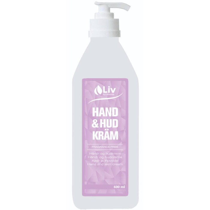LIV Hand & Hudkräm är en oparfymerad, återfuktande och mjukgörande kräm som snabbt går in i huden utan att lämna någon kladdig yta.
