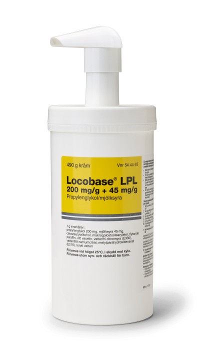 Locobase LPL är en kräm som har vattenbindande och avfjällande egenskaper.