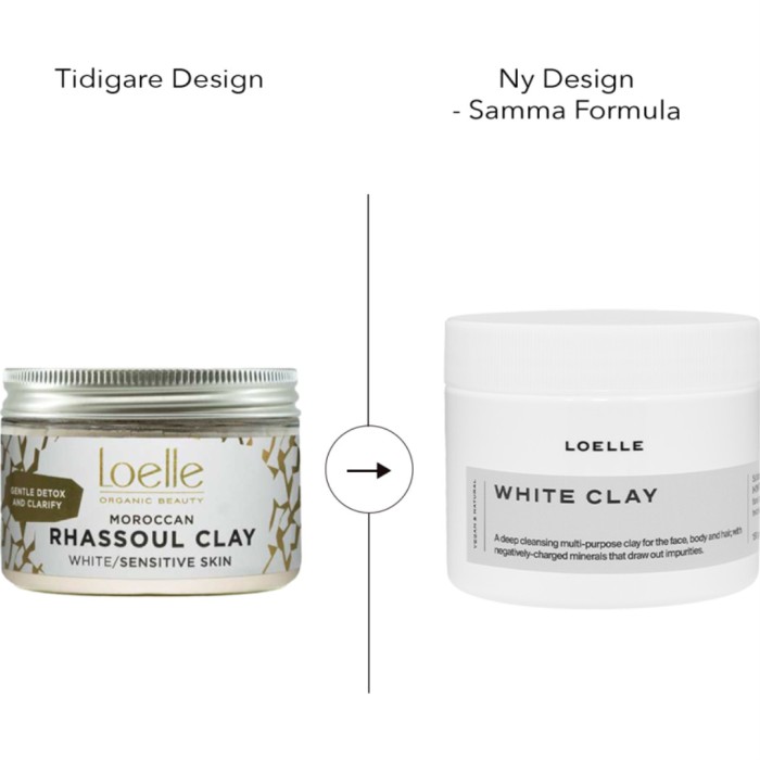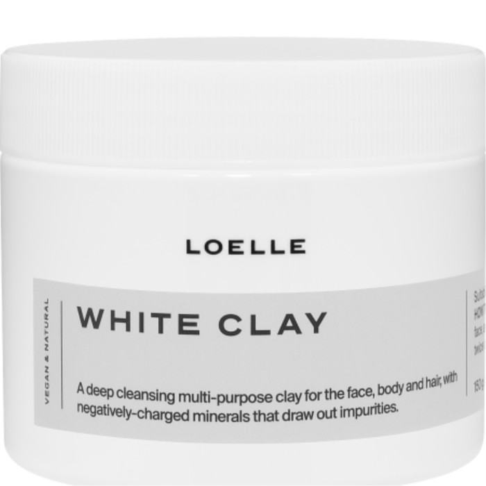 Loelle Moroccan Rhassoul Clay White (vit lera) är ett pulver som används till att göra en ansiktsmask. Masken förbättrar hudens klarhet och elasticitet och har djuprengörande och porsammandragande egenskaper. Rhassoulleran absorberar föroreningar från huden och innehåller mineraler som järn och magnesium.