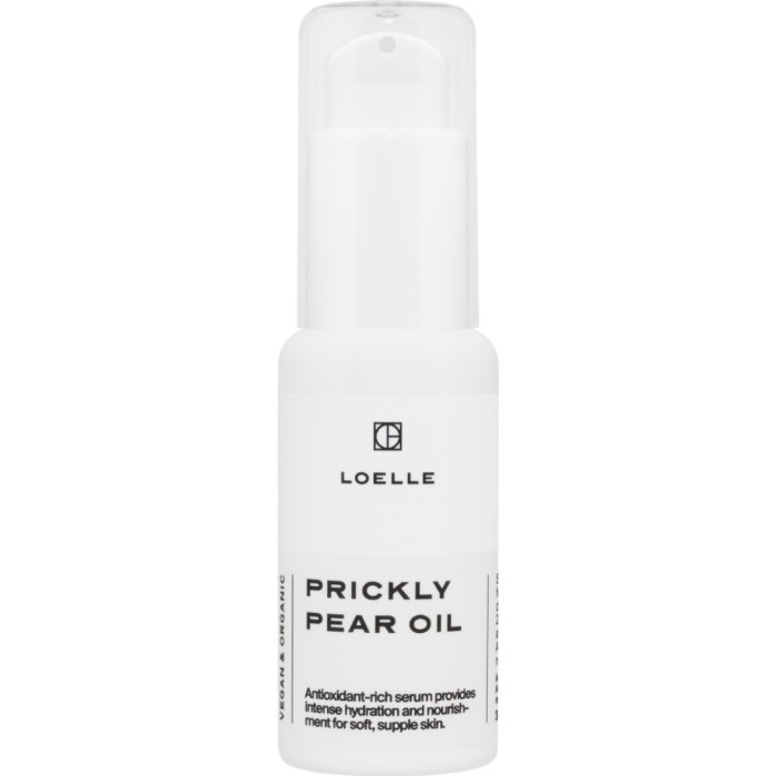 Loelle Prickly Pear Serum är ett näringsrikt ansiktsserum med kaktusfikonfröolja - en "skinfood" som vårdar och återfuktar huden. Oljan har ett högt innehåll av vitamin E, linolsyra, polyfenoler och essentiella fettsyror som hjälper huden att bevara sin spänst trots yttre påfrestningar av t ex klimat. E-vitamin motverkar fria radikaler för att förhindra förtidigt åldrande av huden. Loelles ekologiska kaktusfikonfröolja motverkar fina linjer och minskar mörka ringarna under ögonen samt minskar porernas storlek.