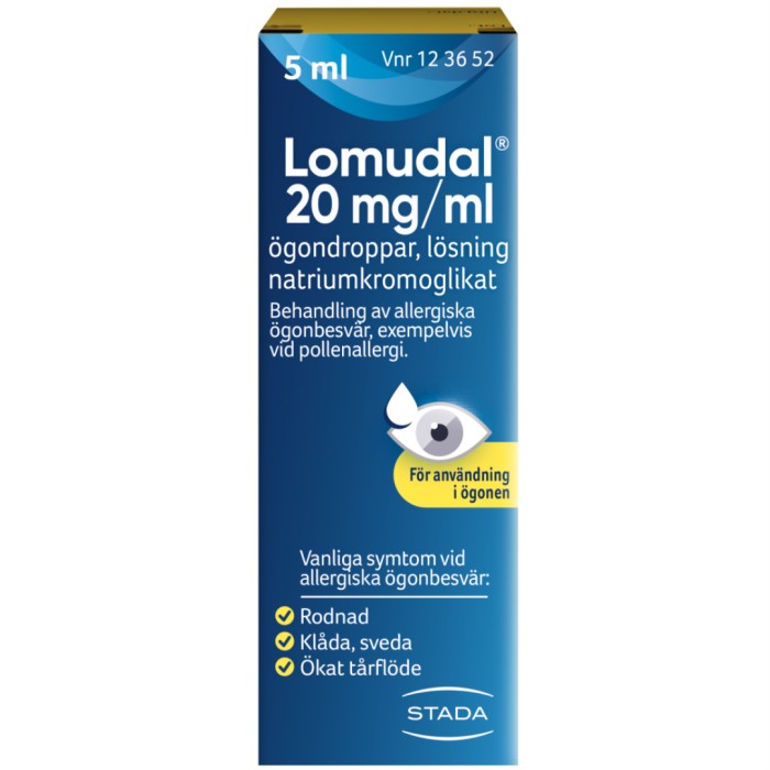 Lomudal innehåller natriumkromoglikat och används vid behandling av ögonbesvär vid pollenallergi. Kan också användas för behandling av allergisk ögoninflammation i bindehinnan (s k konjunktivit) efter samråd med läkare.