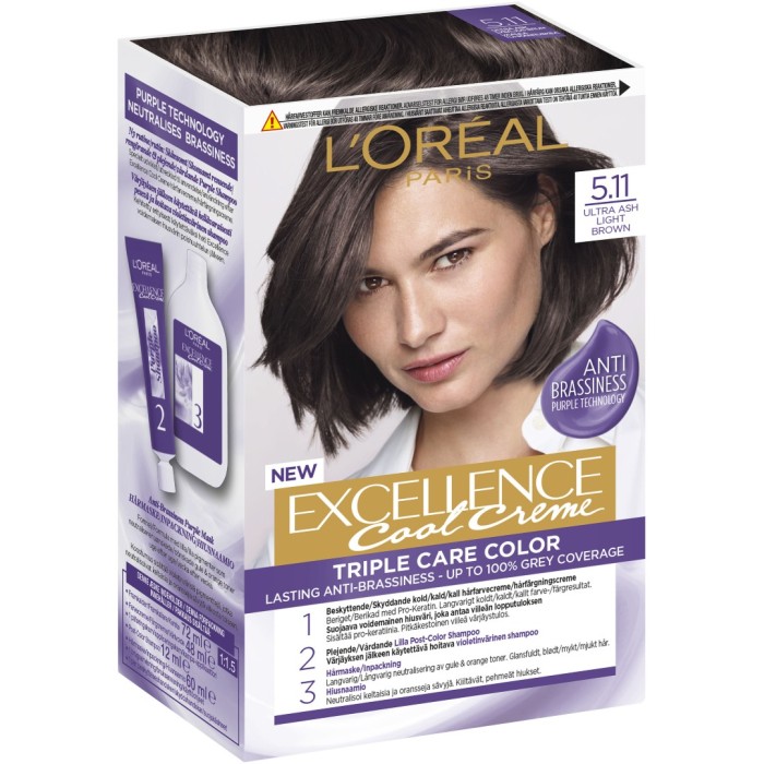 L'Oréal Paris Excellence Cool Creme är en serie hårfärger med kalla pigment, som är berikade med Pro-Keratin och ett serum för att skydda håret medan du färgar det. Excellence Ultra ger ett långvarigt, kallt färgresultat. Det vårdande lila schampot rengör hår och hårbotten från produktrester efter färgning, och framhäver den strålande kalla färgen. Avsluta med hårinpackningen med lila färgpigment för att neutralisera gula och orange toner, och göra håret glansigt och mjukt.
