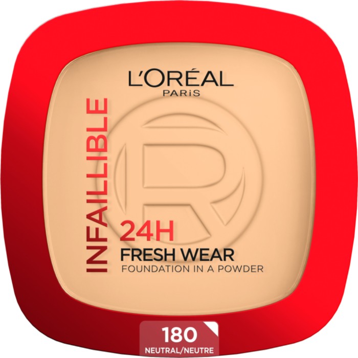 Infaillible 24H Fresh Wear Foundation In A Powder från L'Oréal Paris är en puderfoundation som täcker, samtidigt som den ger ett matt resultat utan att bli "kakig". Ger medium till full täckning som kan byggas upp. Infaillible 24H Fresh Wear innehåller fina pigment som ger huden en matt finish. Den är lätt att tona ut och ger huden en naturlig finish som håller hela dagen. Smetar inte ut och är svettresistent och vattenfast.