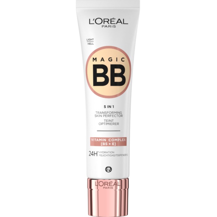 L'Oréal Paris Magic BB Cream är en lätt täckande BB-cream som återfuktar, jämnar ut och ger lyster åt din hud. En lätt täckande BB Cream med SPF 11 som ger din hud fukt i 24 timmar*. Den vårdande formuleringen är berikad med E-vitamin och Pro-Vitamin B5 som förbättrar hudens utseende på 2 veckor**. Inkapslade pigment ändrar färg vid applicering och anpassar sig till din hudton för ett jämn resultat med naturlig lyster. Nyans: 02 Light.